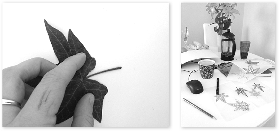 I hand drew loads of ivy, tracing around the natural veins to creAte block shapes, then using the negative space (deleting the veins) to make a shape. It's amazing how many different types of ivy you start to see when you begin to really look.